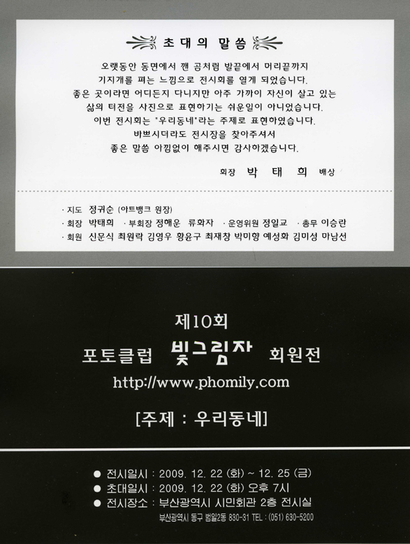 포토클럽 빛그림자 10회 전시회(우리동내)주제전